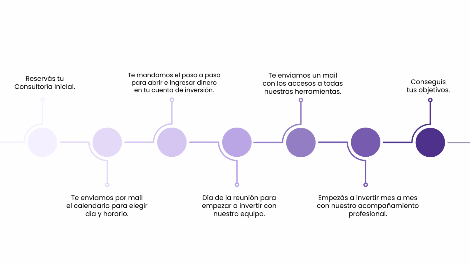 📆 En cuanto reservás tu consultoría, te enviamos un paso a paso para abrir tu cuenta de inversión. Así, cuando llegue el día de la reunión podrás llevarte tu plan de acción armado e incluso, si lo deseas, el dinero ya invertido 🎯